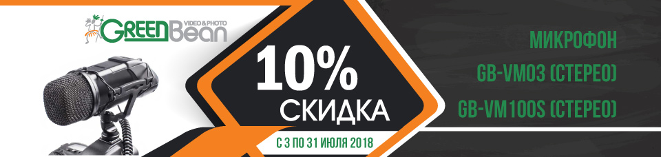Скидка на микрофоны 10%. Акция действует с 3 по 31 июля 2018 года включительно.