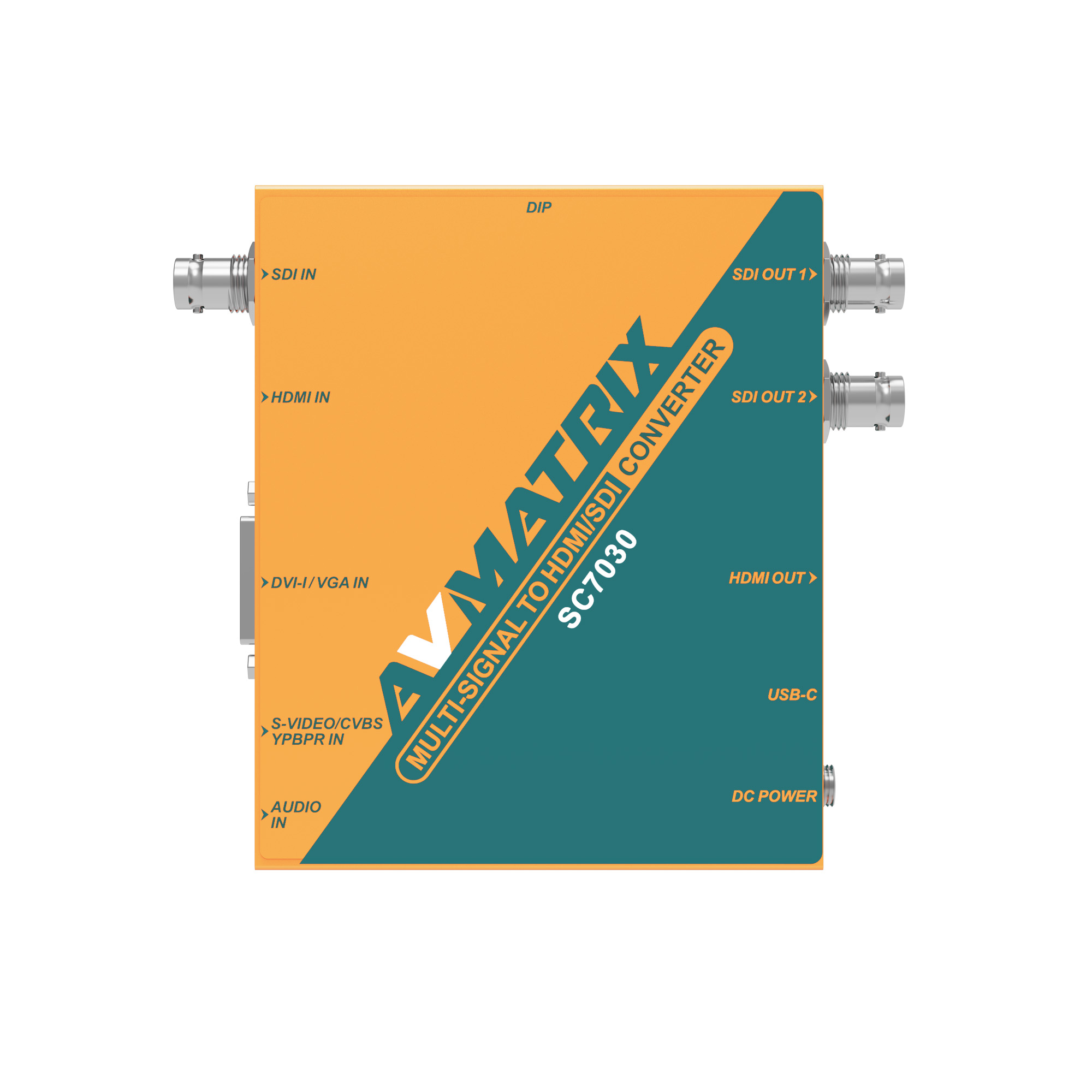 Мультисигнальный конвертер AVMATRIX SC7030 – профессиональное устройство преобразования сигналов SDI / HDMI / DVI-I / VGA / CVBS / S-video/ YPbPr в сигналы SDI / HDMI. Конвертер позволяет масштабировать картинку, преобразовывать частоту кадров и аспект изображения, встраивать аналоговое аудио. Он подходит для проведения мероприятий в прямом эфире – телевещания, видеоконференций, презентаций и т.д.