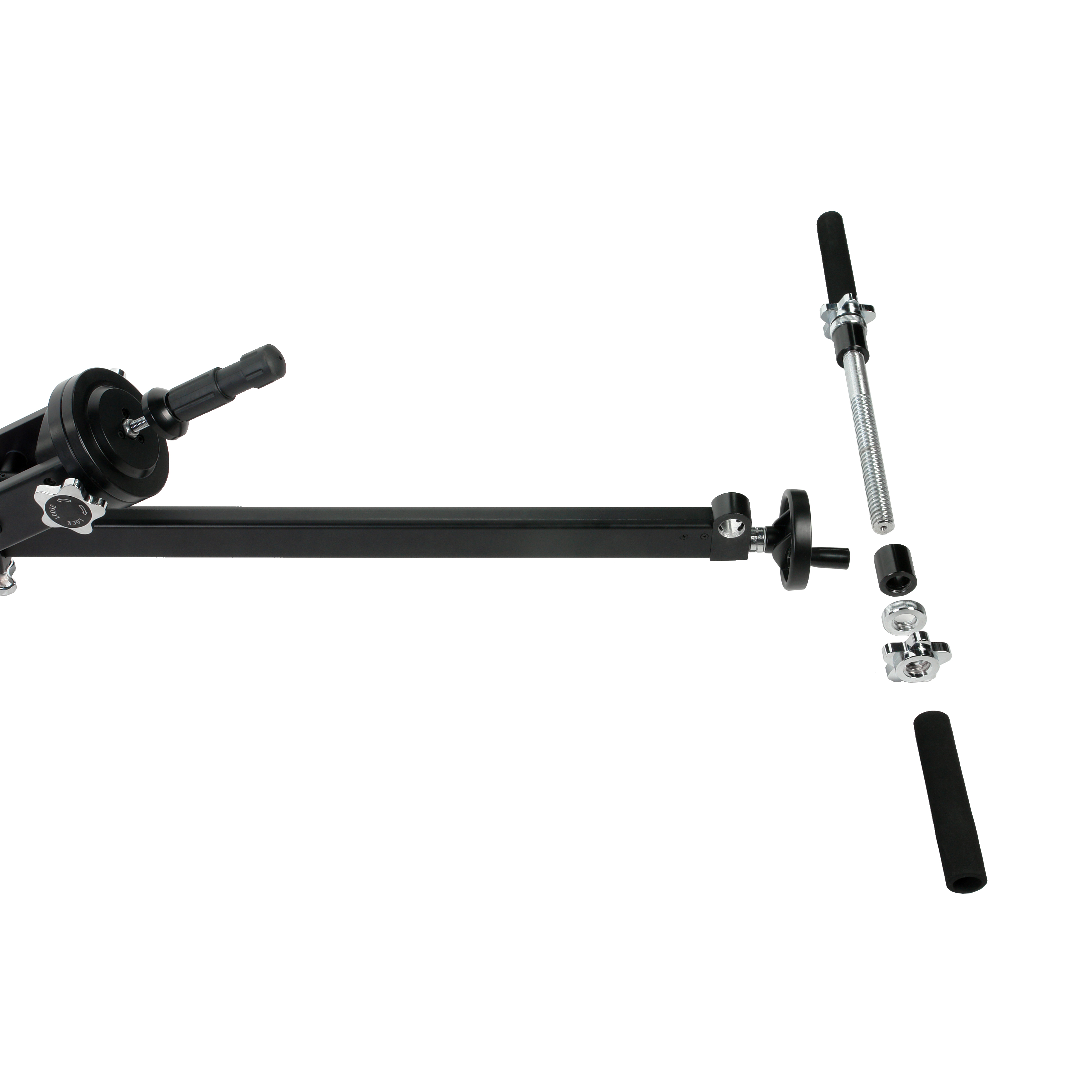 Для компенсации веса установленной на кран камеры необходимо на противоположном конце стрелы закрепить груз-противовес (приобретается отдельно), например диск с посадочным диаметром от 25 мм.