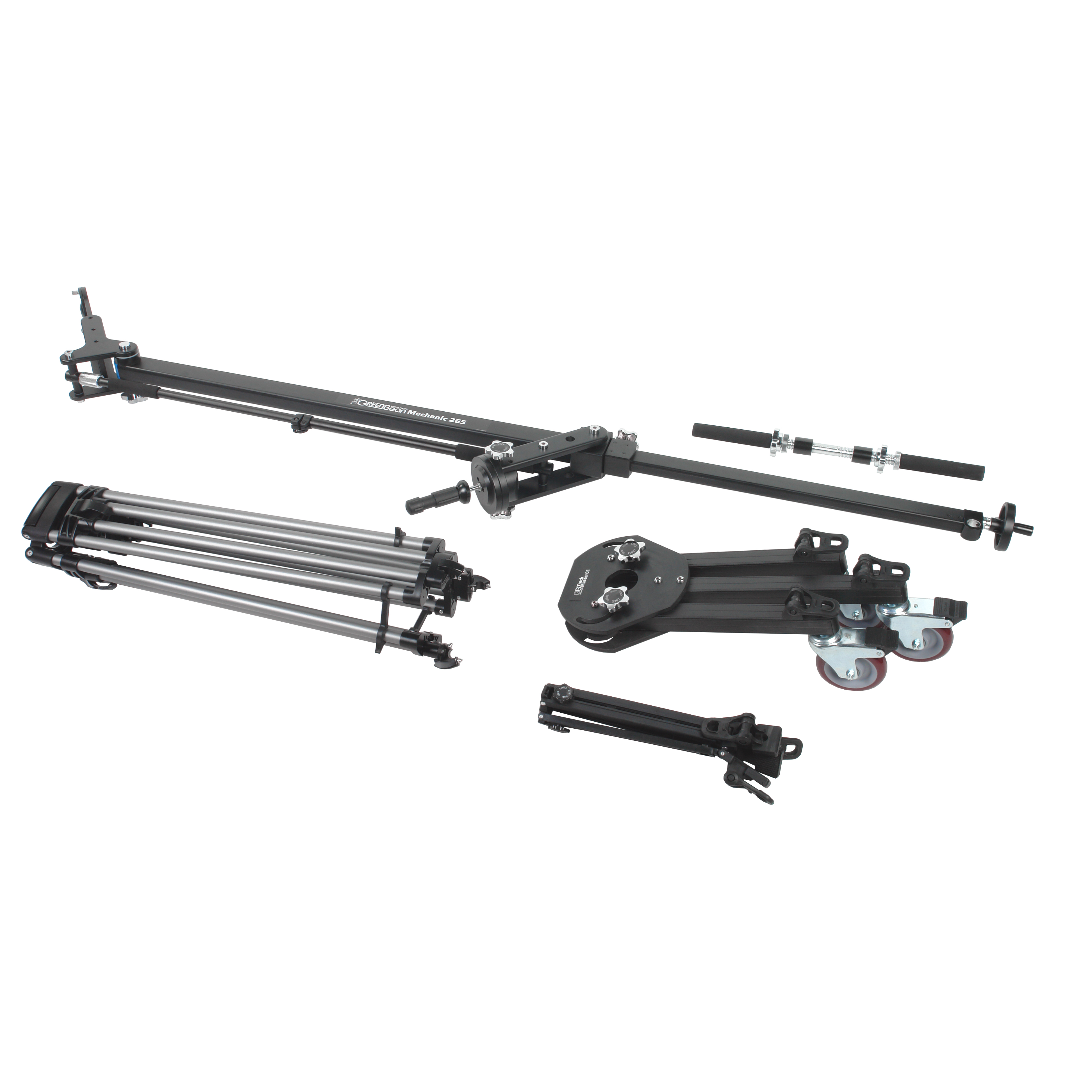 GreenBean Mechanic 265 – операторский кран грузоподъемностью до 20 кг для использования исключительно с видеоголовой для цифровых фото/видео камер, имеющих шаровую базу-адаптер диаметром 75/100 мм для установки на стрелу.