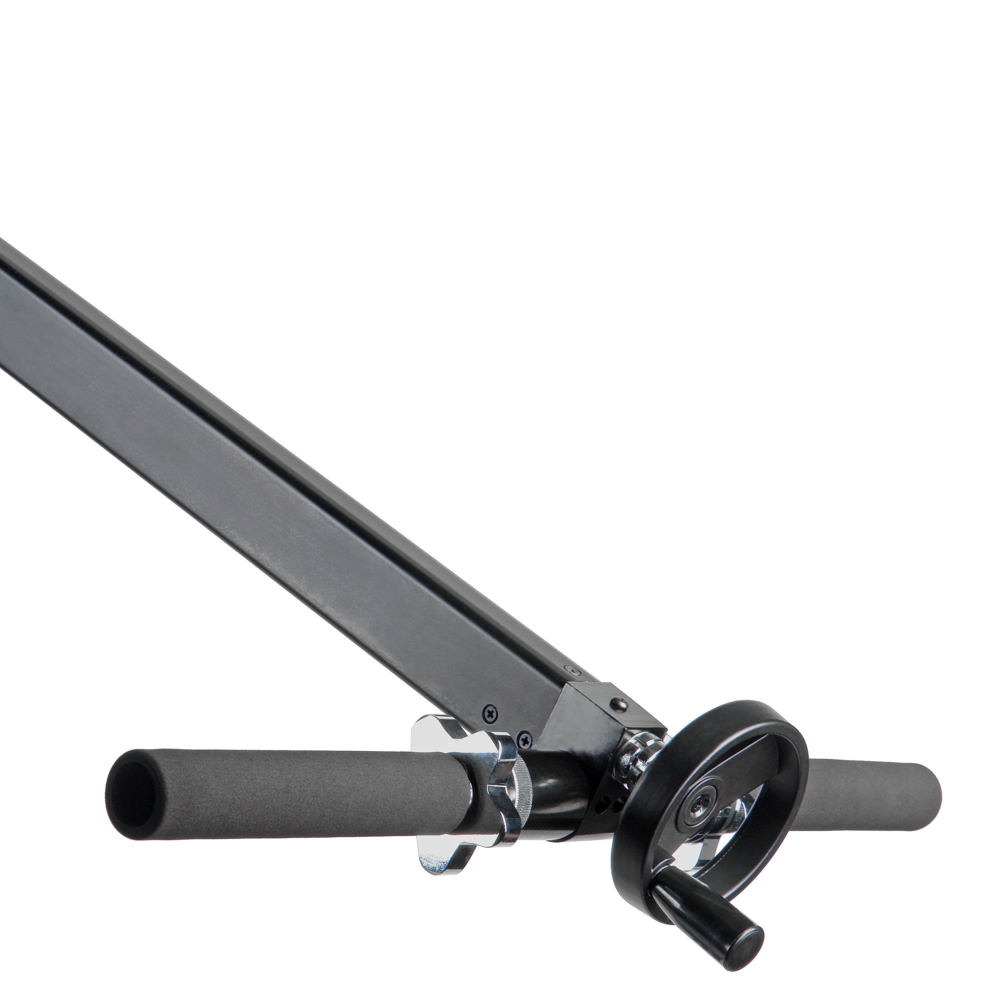 Окончательная балансировка конструкции производится после установки грузов за счет винтового лифта задней части стрелы колесом, расположенным в зоне противовесов. Винтовые зажимы надежно фиксируют положение поворота и наклона стрелы.