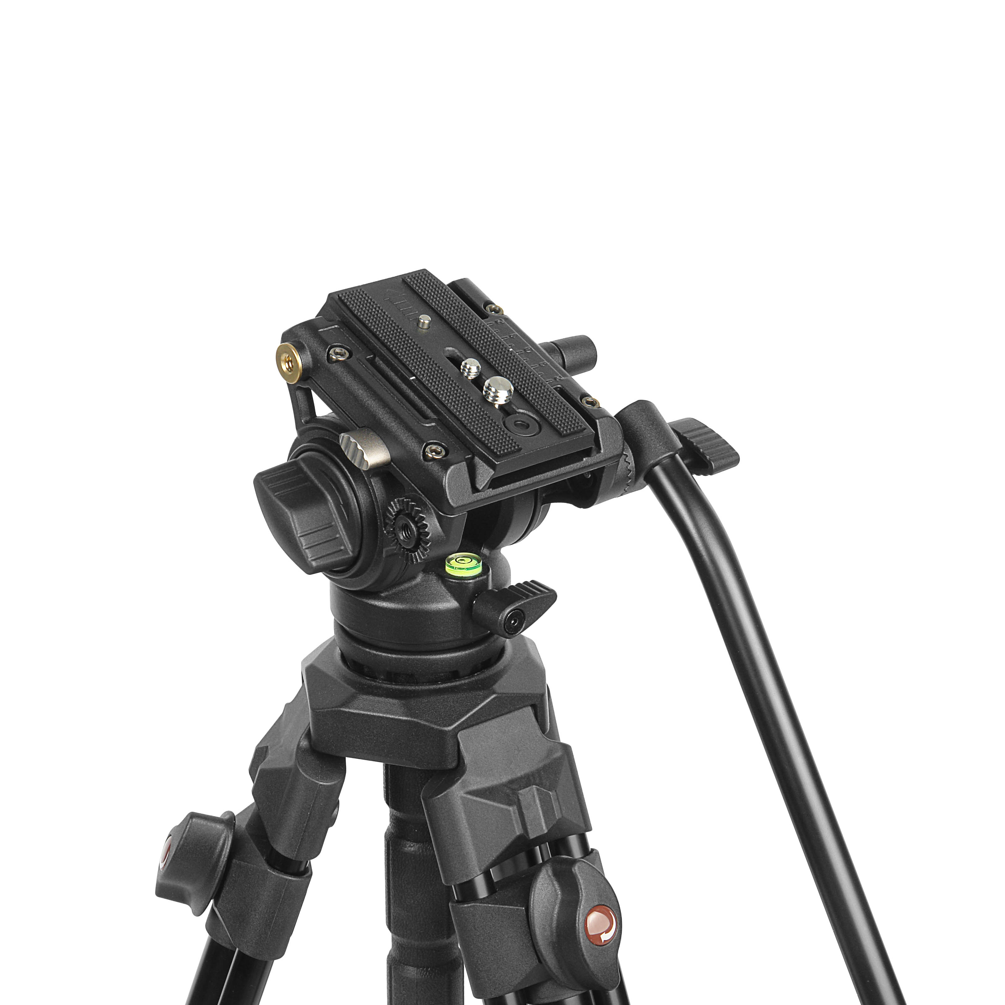 Длинная эргономичная рукоятка легко переставляется на левую или правую сторону в зависимости от предпочтений оператора. Встроенный в основание головки пузырьковый уровень помогает быстро и точно выставить камеру по горизонту.